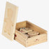 Wooden puzzle that includes four outfits, 12 puzzle pieces, and a wooden box with lid