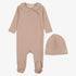 Trim Colalr Footie And Beanie - Pink