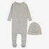 Rib Stripe Footie And Beanie - Navy Blue