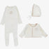 Velour Cardigan Footie And Bonnet - Cream & Pink